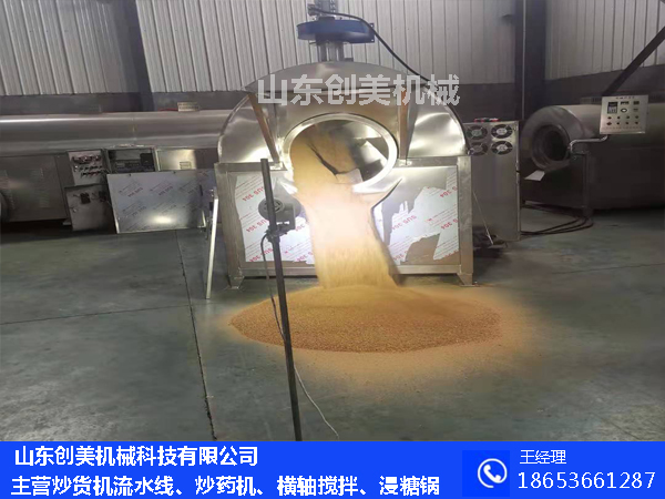 山東創(chuàng)美機械研發(fā)生產(chǎn)的電磁混炒瓜子生產(chǎn)線,是炒制五谷雜糧、干果、堅果、膨化食品和休閑食品的流水線炒貨設(shè)備,它搭配提升上料機、震動篩選機和冷卻床等配套設(shè)備,自動化程度非常高,利用電磁感應鍋體直接加熱,升溫快,溫度高,沙子等介質(zhì)可不出鍋循環(huán)翻炒,避免了熱量流失,節(jié)能環(huán)保;強大的智能控溫系統(tǒng),控溫精確,炒制過程中鍋內(nèi)溫度始終保持一致,省時省力省人工,內(nèi)置變頻調(diào)節(jié)器···